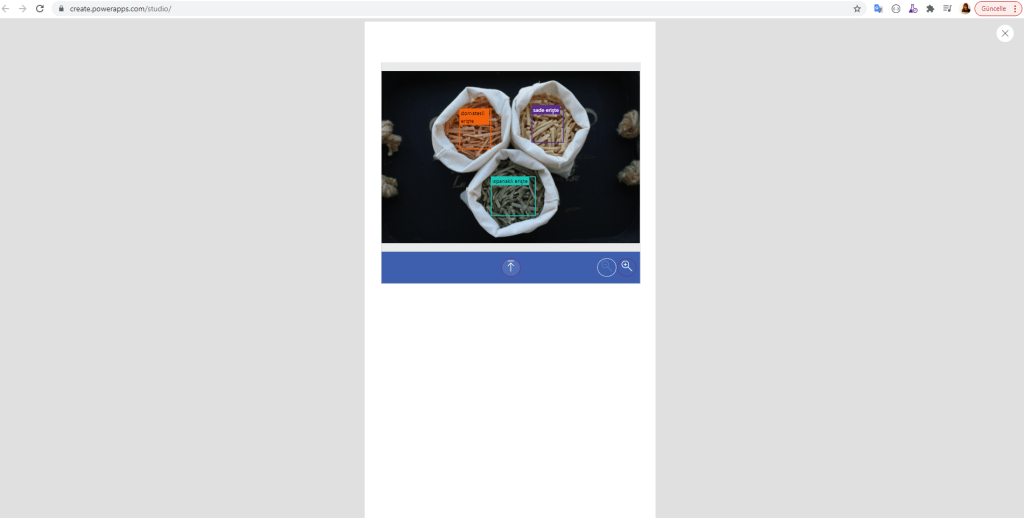 Kısaca 3 çeşit eriştenin ilgili görsellerden tanımlanması üzerine kuruluydu. Yani yüklediğim fotoğraflarda erişteyi bulup bana hangi çeşit olduğunu söyleyecek bir yapay zeka modeli geliştirmiştik. Şimdi bu modelin power apps uygulamasında nasıl kullanıldığını öğrenelim.