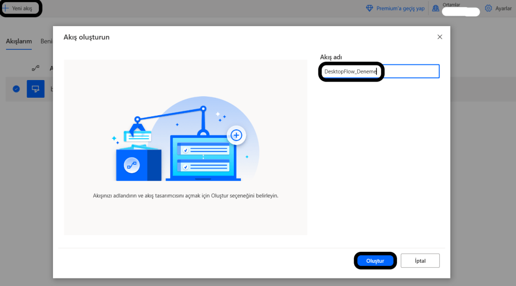 Yeni bir akış oluşturmak isterseniz üst menüdeki +Yeni Akış ile akışınıza isim vererek başlayabilirsiniz.