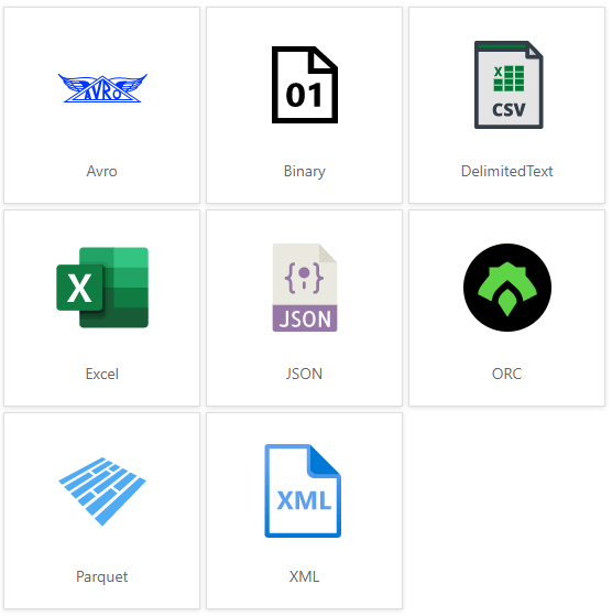Hatırlatmakta fayda var ADF’e geçince Blob Storage tüm dosya tiplerini desteklemiyor, sadece aşağıda gösterilen dosyalar destekleniyor.