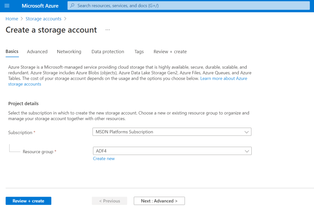 Diğer configuration bilgilerini de istediğiniz gibi doldurup Review + Create ile veri transformu yapacağımız ADF’i oluşturuyorsunuz.