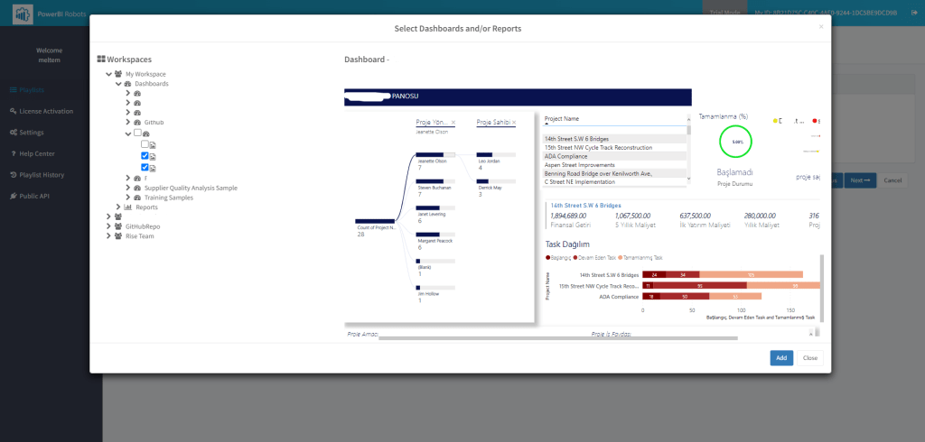 Next ile ekran görüntülerinin alınmasını istediğim rapor veya dashboardları seçiyorum.