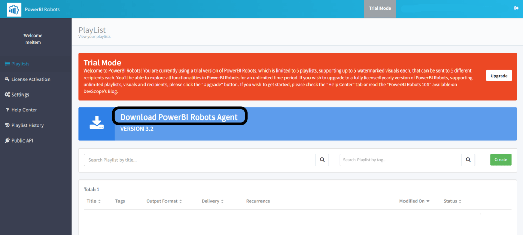 Trial versiyon için account oluşturduktan sonra Power BI ve robotun sync olabilmesi adına birtakım kimlik doğrulamalarını yapabilmek için lokalinize .exe uzantılı “PowerBI Robots Agent”ı yüklemeniz gerekiyor.
