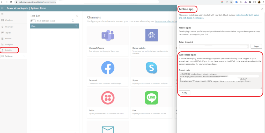 PVA> Publish > Channels > Token Endpoint ‘i kopyalayabilir
