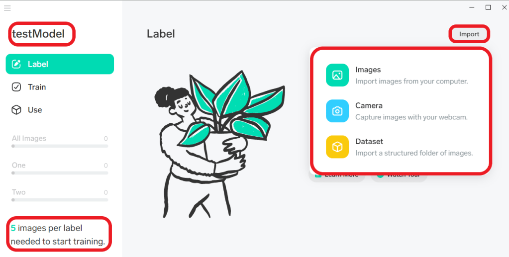 Lobe’u indirdikten sonra uygulamayı açtğınızda varsa mevcut modellerinizin listelendiği ve yeni bir model oluşturabileceğiniz çok basit biz arayüzle karşılaşıyorsunuz.